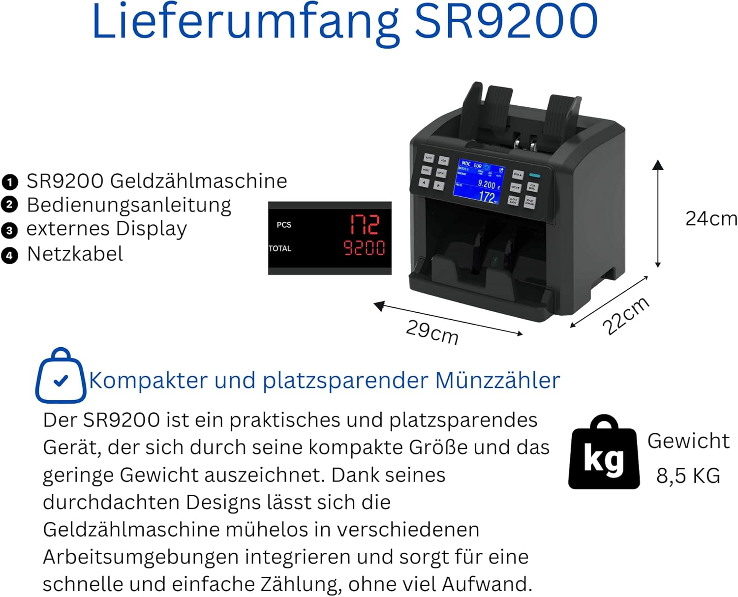 Der SR9200 ist ein professioneller Geldzähler für den gesamten gewerblichen Handel und Verkauf .